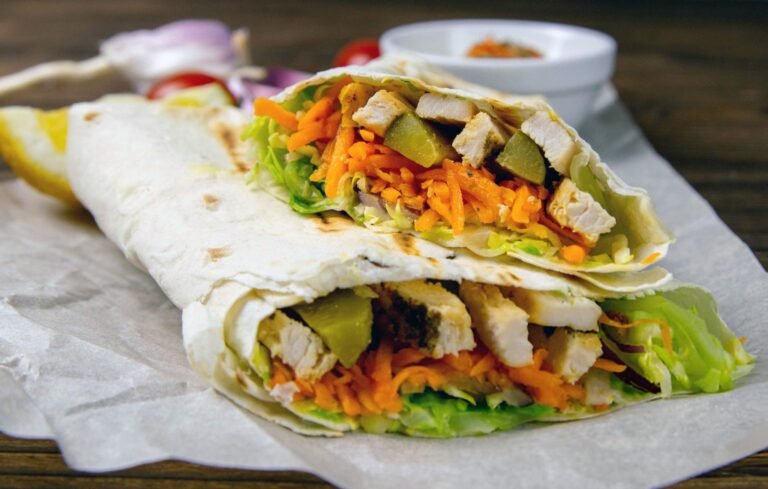 pan de burrito, pollo frito barbacoa, tomate, pepino, lechuga y col y salsa el artista